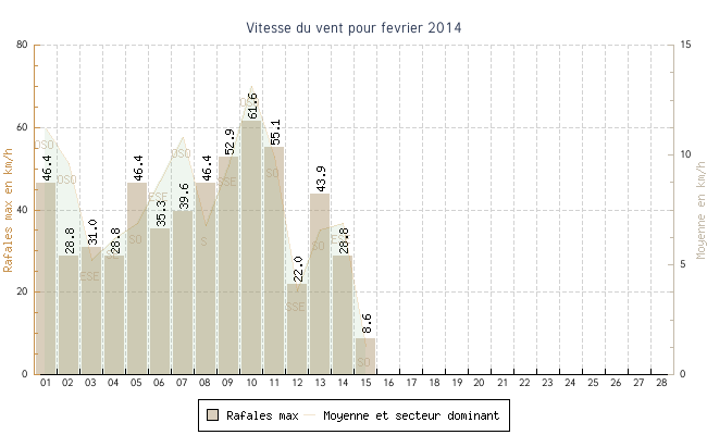 | Total | 0.4 °C | 14.8 °C | 6.7 °C | 7.8 km/h (61.6 km/h) | SO |